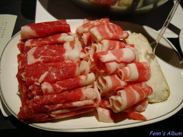 這是我們第一輪點的食材囉,左到右是 沙朗、肥牛、花枝漿