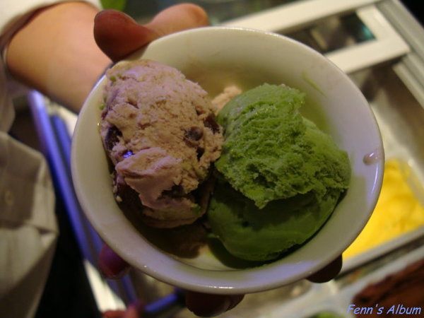 這是我最愛的吃法,紅豆配上抹茶!因為明治的抹茶偏苦,配上香甜的紅豆反而顯的甜而不膩,抹茶的香氣更加明顯喔