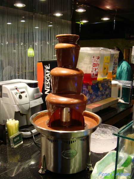 噹噹~自己動手做巧克力串可是趣味無窮,先拿竹籤串好你要吃的水果或是棉花糖,然後放到加熱中的巧克力噴泉,再馬上放入冰水中冰鎮!店家提供的巧克力算是中間品質,愛吃的人可不能錯過唷