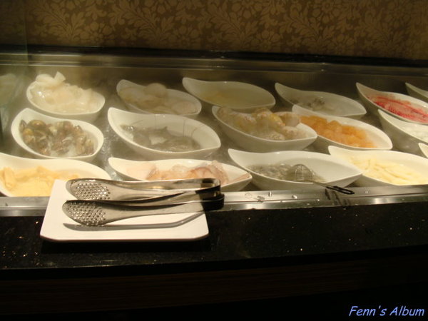 接著要介紹食材囉!店家提供的食材種類相當的多,雖然擺放的盤子容量不多但店家還算是滿勤於補料的,靠座位區的這塊是放海鮮類